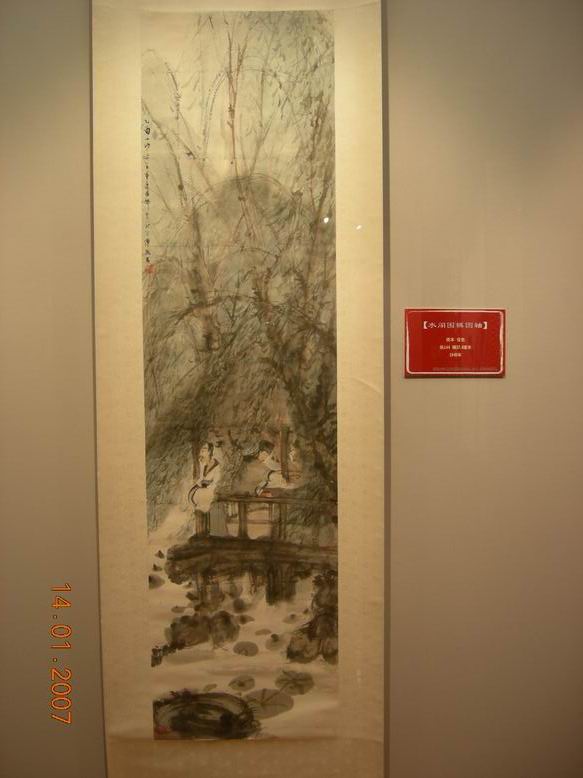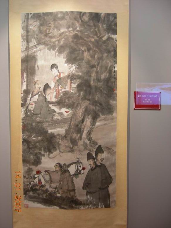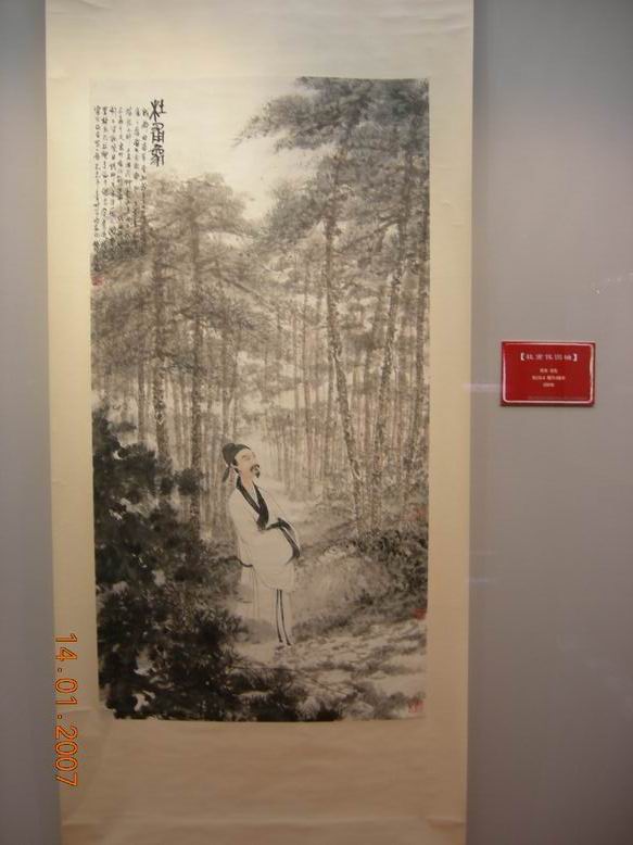 生平简介 傅抱石,我国著名画家,“新山水画”代表画家。原名长生、瑞麟,号抱石斋主人。1904年10月5日生,江西新余人(一说江西南昌)。少年家贫,11岁在瓷器店学徒,自学书法、篆刻和绘画。1925年著〈国画源流概述〉,1926年毕业于省立第一师范艺术科,并留校任教。1929年著〈中国绘画变迁史纲〉,1933年在徐悲鸿帮助下赴日本留学。1934年在东京举办个人画展。1935年回国,在中央大学艺术系任教。抗日战争期间定居重庆,继续在中央大学任教。1946年迁南京。新中国成立后,曾任中国美术家协会副主席、美协江苏分会主席、江苏省书法印章研究会副会长。中国美术家协会副主席、美协江苏分会主席、江苏省书法印章研究会副会长。并当选为第三届全国人民代表大会代表、第二届政协全国委员会委员。1952年任南京师范学院美术系教授。1957年任江苏省中国画院院长。由于长期对真山真水的体察,画意深邃,章法新颖,善用浓墨,渲染等法,把水、墨、彩融合一体,达到翁郁淋漓,气势磅礴的效果。在传统技法基础上,推陈出新,独树一帜,对解放后的山水画,起了继往开来的作用。其人物画,线条劲健,深得传神之妙。1965年9月29日病逝南京,卒年六十二岁。 傅抱石在艺术上崇尚革新,他的艺术创作以山水画成就最大。在日本期间研究日本绘画,在继承传统的同时,融会日本画技法,受蜀中山水气象磅礴的启发,进行艺术变革,以皮纸破笔绘山水,创独特皴法-----抱石皴。他的人物画受顾恺之,陈老莲的影响较大,但又能蜕变运用,自成一格。他笔下的人物形象大多以古代文学名著为创作题材,用笔洗练,注重气韵,达到了出神入化的效果。人物以形求神,刻意表现人物的内在气质,虽乱头粗服,却矜持恬静。傅抱石先生人物画的线条极为凝练,勾勒中强调速度、压力和面积三要素的变化,不同于传统沿袭画谱的画法。他还把山水画的技法融合到自己的人物画之中,一改清代以来的人物画画风,显示出独特的个性。傅抱石是开宗立派的一代艺术大师。 画作理解国画大师傅抱石先生是位博大精深的学者,毕生著述二百余万字,涉及文化的各方面。他对古典文学与艺术的研究是同步的,于文学中尤钟情于诗,历代佳作无不熟稔,体现在他的画中。大致有三重点:首先是他最崇仰的战国时代爱国诗人屈原的《离骚》,心仪其品德情操,同情屈子“抱石怀沙”自沉汨罗江的悲壮结局,因而自号“抱石斋主人”,先生所作《九歌》图早已斐声遐迩。另一个重点是石涛。先生青年时期编着《石涛上人年谱》,从上人的生活到作品,考据精详,故在艺术上受其影响也最深,且以石涛诗入画,随手拈来即成佳品。作为重点中的重点,抱石先生取材最多的还是唐诗。唐诗在创作的当时就深入民间,即至今日,历朝士子必读的《四书》几乎尘封,但唐诗中的名篇却依然孺子能背。古代典藉中有关哲学、道德等内容能在一定条件下保存,而政治、社会的理论会随着时代变化而被人淡忘,只有诗的艺术魅力却永葆青春。画家取材唐诗有其普遍性的一面,然而先生创作的唐人诗意画却有不同一般的特殊性。 画家运用古诗有二种不同方式。一是以己意去凑古人的诗,譬如李白的《清平调》系藉芍药写大真,而有人只画花,却把诗句全部抄上,其实画面离主题甚远。另一种是根据古人的诗立意,或从中汲取灵感,抓住其精神实质进行艺术再创造,无须题诗而诗意盎然。抱石先生可称后者之典范,他的古人诗意画既有宏景钜制,又有小品点晴,虽在有些画中题上诗句,但不占重要位置,有的只写题目,有时仅题款,可是读者一目了然是哪首诗。臻此化境,绝非偶然。先生所有的绘画作品都是转化为视觉形象的诗,他本身就具备诗人的气质。除了标明为诗意画的以外,凡写“胸中丘壑”或写生作品,都是撷取大自然蕴蓄的诗意。描写古人形象或其轶事,就是歌颂某一古人或吟咏某一场景的诗句。画的语言即诗的语言,画的意境即诗的意境。区别于一般所谓的“诗配画”,而是诗即是画,画即是诗。 抱石先生对古人从深切理解达到思想感情的共鸣。笔者曾多次提到,先生“思接千载”(刘勰《文心雕龙》语),屈原、李白、杜甫、石涛等古人,不仅是他研究的对象,还成了挚友。抱石先生以绝代天才与古人息息相通,使他笔下的人物不同于穿古装的现代演员而是真正的古人。因而他的古人诗意画既体现了诗人的三昧,又是与作者灵魂的默契。不论相隔多少个世纪,先生与古人感情的相互碰接,就会激发出强烈的闪光。这是先生古人诗意画卓绝千古之处,我们从《唐人诗意画册》可以略窥端倪。先生巧妙地以最少的笔墨表现最多的内涵,也是在最小的空间赋予最大的容量,非“大手笔”不能。十六幅册页取材于先生酷爱的四家——李白、杜甫、王维、白居易。第一幅李白《将进酒》是一首较长的“乐府”,教李白与“岑夫子”、“丹丘生”(指李白好友岑勋和元丹丘)同饮。画面只有四个人物,点缀背景的弄夙为大写意,略妇数笔似示上面有画。诗中“君不见黄河之水天上来,奔流到海不复回”、“君不见高堂明镜悲白发,朝如青丝暮成雪”以及“古来圣贤皆寂寞,唯有饮者留其名”这些感情和议论,目的是抓住时机饮酒。画家塑造人物时设计了李白的挥手动作——“五花马,千金裘,呼儿将出换美酒。”这一句话点出了诗的主旨,显示了李白那“天生我材必有